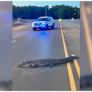 Police say animal control contacted a game warden in reference to the gator in the road.